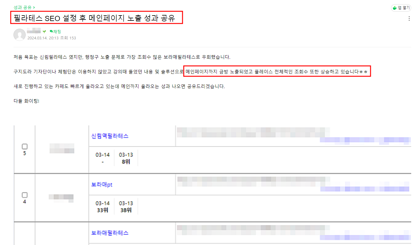 SEO 설정으로 메인페이지 노출 + 조회수 상승 사례