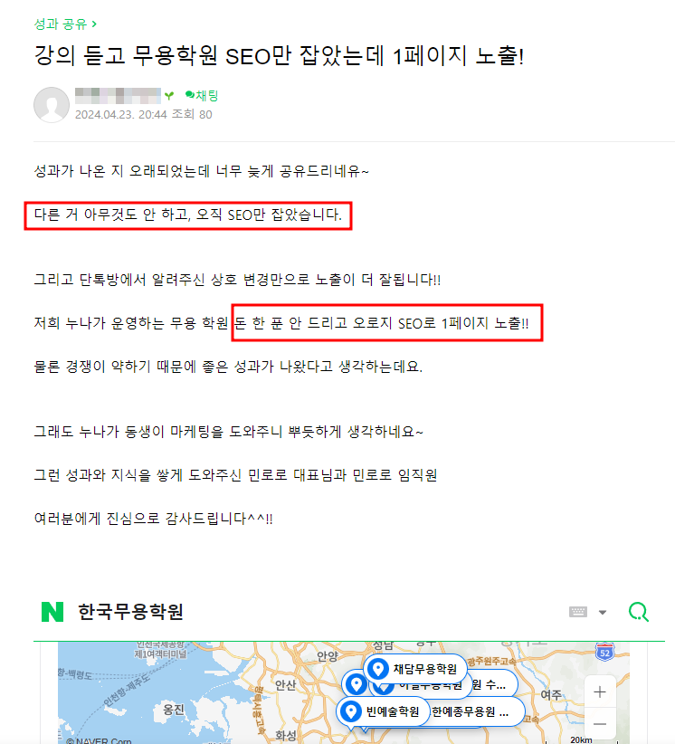 업장명만 최적화해도 70~80%가 순위가 오르지만