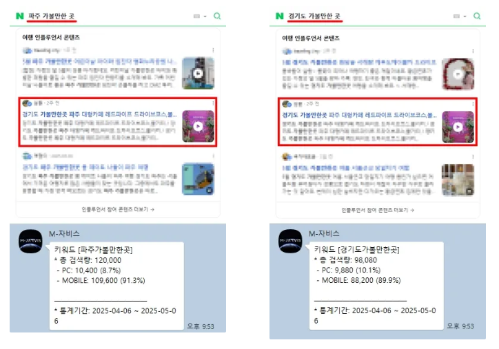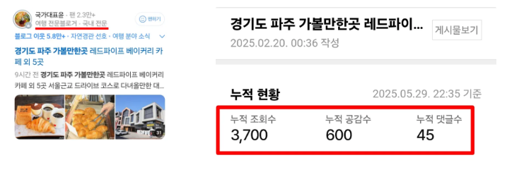 비슷한 시기에 두 포스팅을 노출시켰으며,