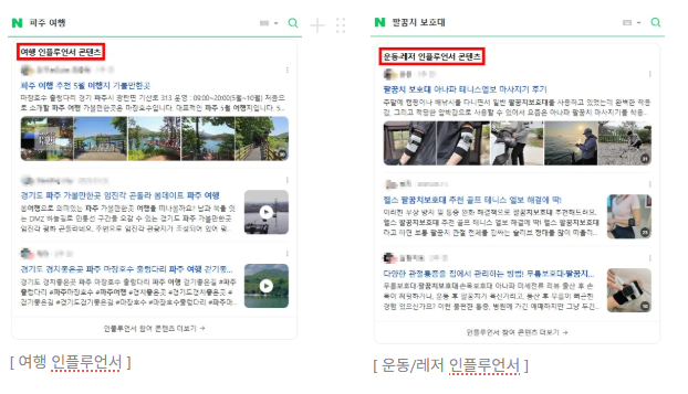 키워드를 검색했을 때, ‘인플루언서 콘텐츠’ 영역 내에