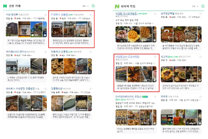 네이버에서 매장이 상단에 노출되는 것과 스크롤을 5분 내려야 나오는 것,