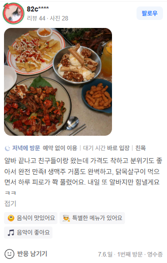 예: 음식 맛, 서비스, 분위기 등 원하는 방향으로 원고를 구성합니다.
