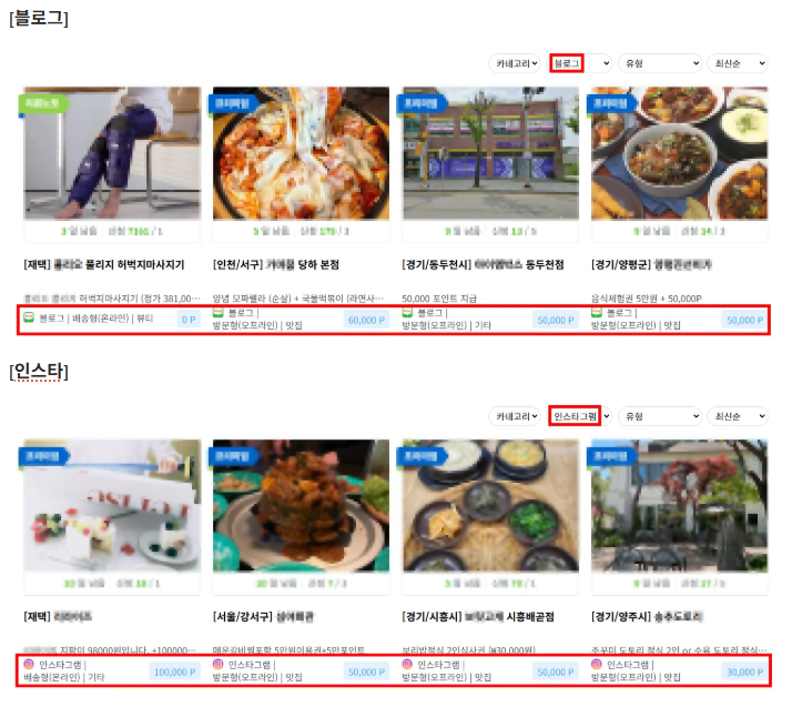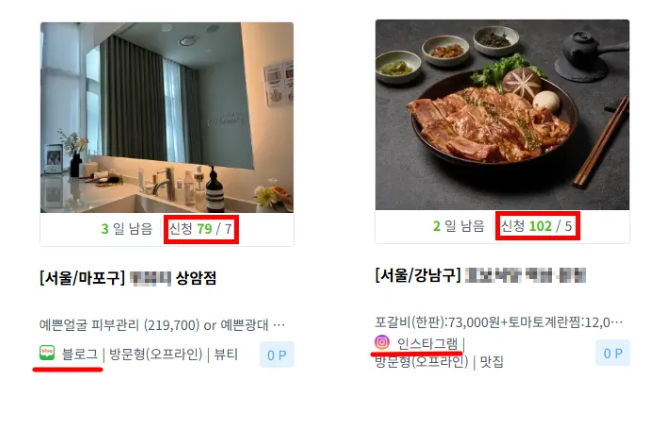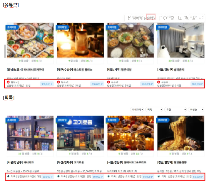 유튜브, 인스타, 틱톡 등 영상 체험단은 견적이 더 높습니다.